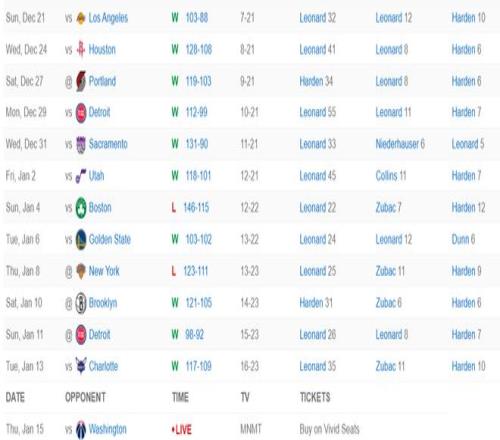 快船过去13场比赛取得11胜2负,小卡的正负值也继续提升到+145还是联盟第一,莱昂纳德的场均得分也提升到场均32.72分也是联盟第一,他的个人能力真的强。
