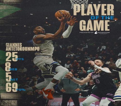 昨日常规赛,雄鹿主场以106-139惨败森林狼。