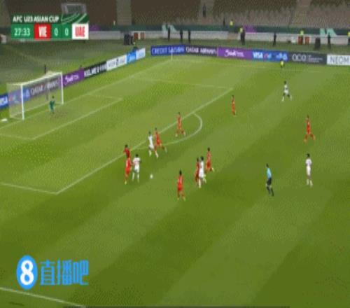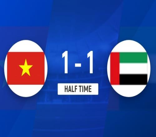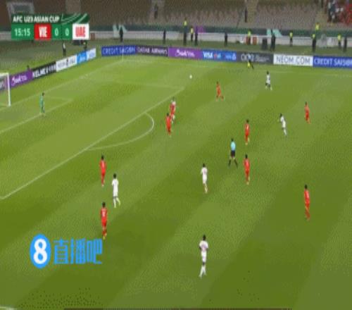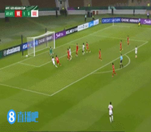 伤停补时5分钟。上半场比赛结束,越南U23暂1-1阿联酋U23。