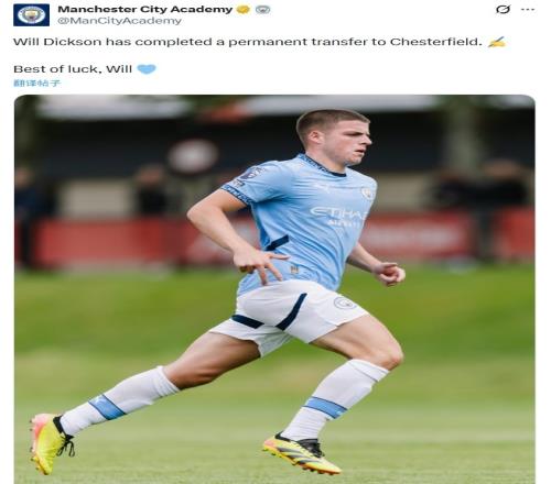 体育播报1月16日宣 曼城官方宣布,21岁英格兰前锋威尔·迪克森永久转会加盟英乙切斯特菲尔德。